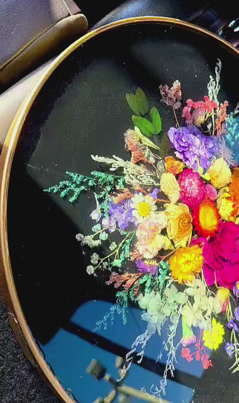 Bring nature and elegance into your space with this round handmade epoxy resin table(or just the slab as a wall art)—as shown in the pictures—featuring a stunning slab of colorful florals.